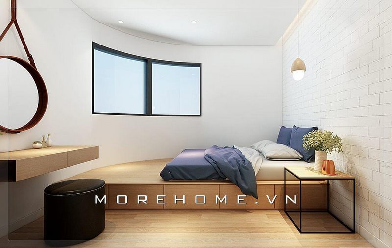 Giường ngủ chung cư hiện đại, đơn giản, gam màu vàng gỗ công nghiệp đầy tinh tế tạo cảm giác thoải mái và ấm áp hơn cho mỗi giấc ngủ của gia chủ