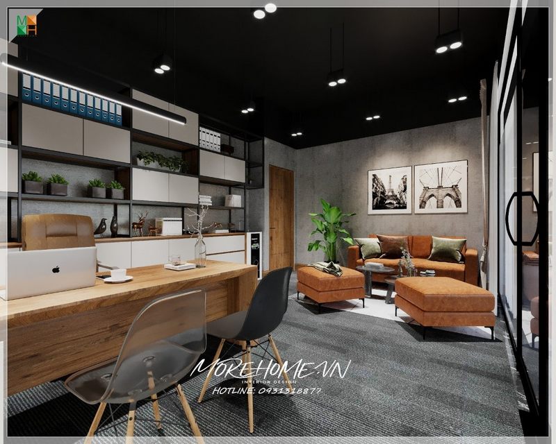 Thiết kế phòng làm việc tạo điểm nhấn với mặt đá uốn cong độc đáo