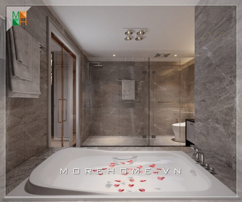 Một mẫu thiết kế nhà tắm được tích hợp với WC chung cư, nhà phố và biệt thự hiện đại cung cấp sự tiện nghi cao.
