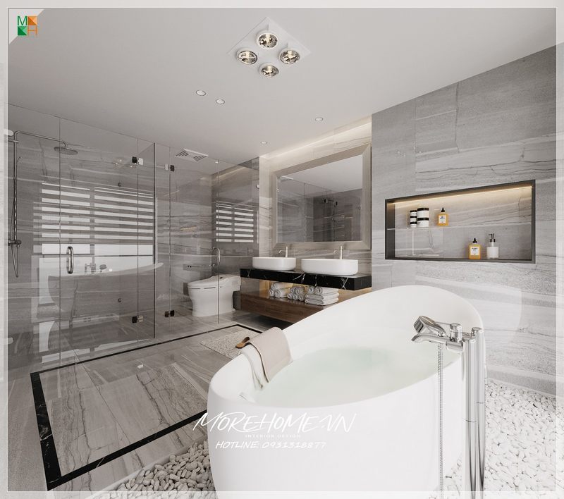 Hãy chiêm ngưỡng những không gian với gam màu sang trọng, từ ánh sáng điểm xuyến cẩn thận cho đến những chi tiết thiết kế tỉ mỉ. Tận hưởung cái nhìn tổ chức về quầy bar mini trong phòng tắm hay các yếu phẩm móc treo đồ tiện ích chỉ cho việc sử dụng, không gian phòng tắm sang trọng không chỉ là nơi để bạn chăm sóc cơ thể mà còn là nơi để thưởng thức cuộc sống.